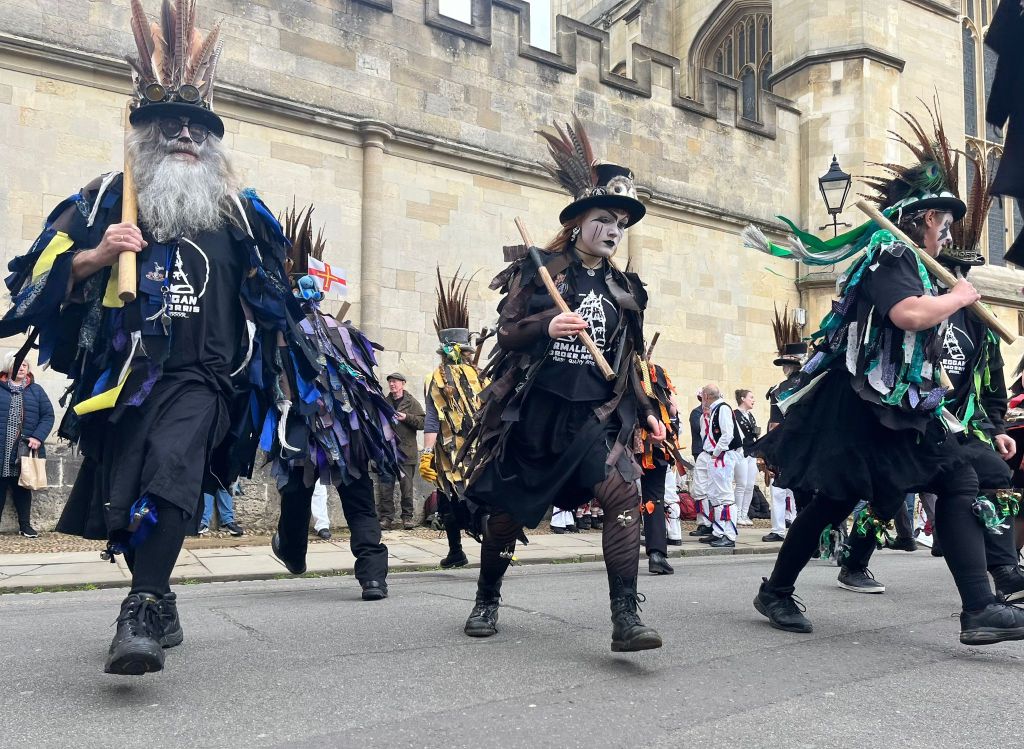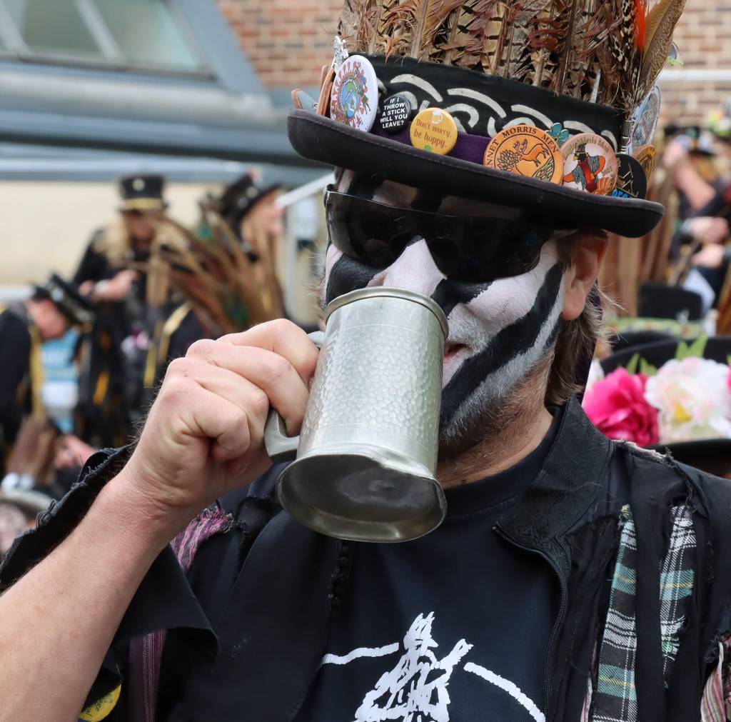 We are keen to introduce new members, especially if you are athletic with plenty of Grrr to keep up the ‘oomph’ and gusto of the Border style. If you don’t know how much inner Grrr you have, come and let us find it for you – you may be surprised. We particularly welcome interest from men and minorities. Under 18’s are welcome if accompanied by an adult at all times. (Why not persuade the adult to join us, too?) At dance-outs, when you’re not dancing you’ll be in the band, joining the percussion. Oh, and taking on some Morris fuel (bring a tankard!). You can also join in our singing sessions in the pub after practice or when we dance-out with other Morris sides (we’ll teach you the songs too). If you fancy a shot at this, send a message to armaleggan@gmail.com . Practice is at Cumnor Village Hall near Oxford (OX2 9QF) on Wednesdays 8pm – 9.30pm from September to April.